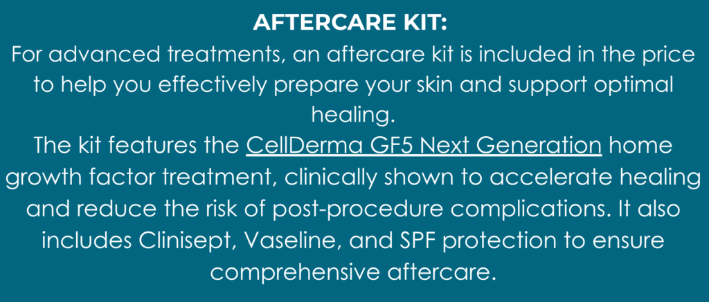 For advanced treatments, an aftercare kit is included in the price to help you effectively prepare your skin and support optimal healing.
