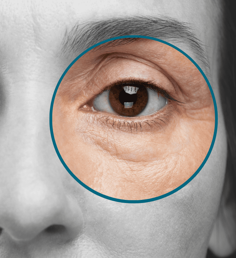 Bags under the eyes can be seen as mild swelling in the skin below the eye. There are a number of factors that can cause a person to have bags under the eye. The main factor for eye bags and sagging around the eye is ageing. As we age, the muscles that support the eyelids begin to sag, fat in the lower eyelid moves downward, and gravity generally shifts everything downwards over the hills and valleys below the eye. Over time as we age our skin also loses its elasticity due to decreasing collagen and elastin within our body.