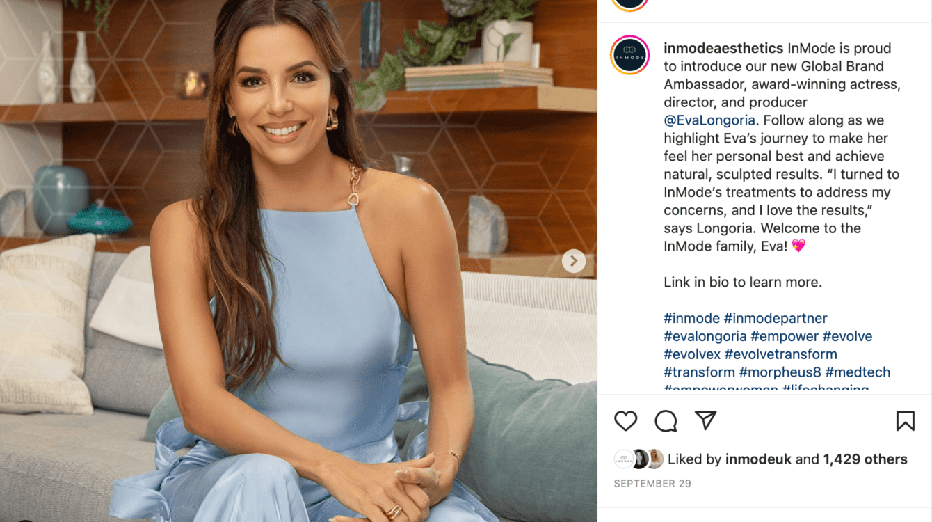 “InMode is thrilled to partner with Eva Longoria. Eva’s personal and genuine experience with InMode technologies makes her the perfect person to share her story worldwide,” said Shakil Lakhani, President of InMode North America.