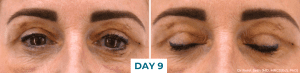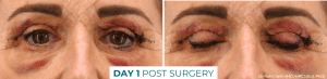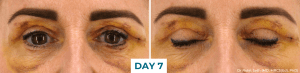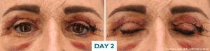 I woke up feeling ok, no pain or headache at all. The bruising had already started to come out and I had some fluid build-up under my eyes, but it didn’t feel tender or sore. I used CellDerma’s GF5 both in the morning and evening and also used a cold compress a couple of times throughout the day which helped.  The bruising progressed as the day passed, but I just had a chilled-out day in front of the TV.