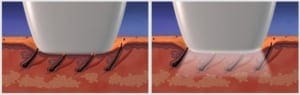 This image shows how the laser light penetrates deeper into the hair shaft when using the right technique.