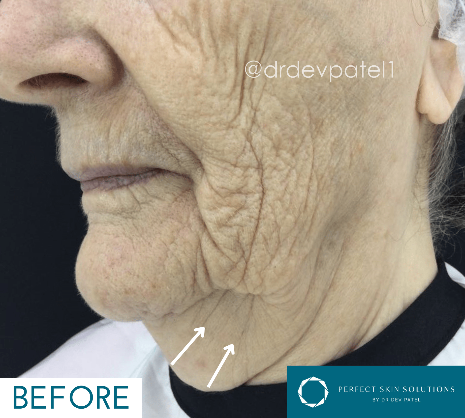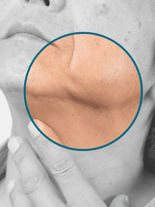 - Skin laxity (eg on neck, hooded eyes, jawline)